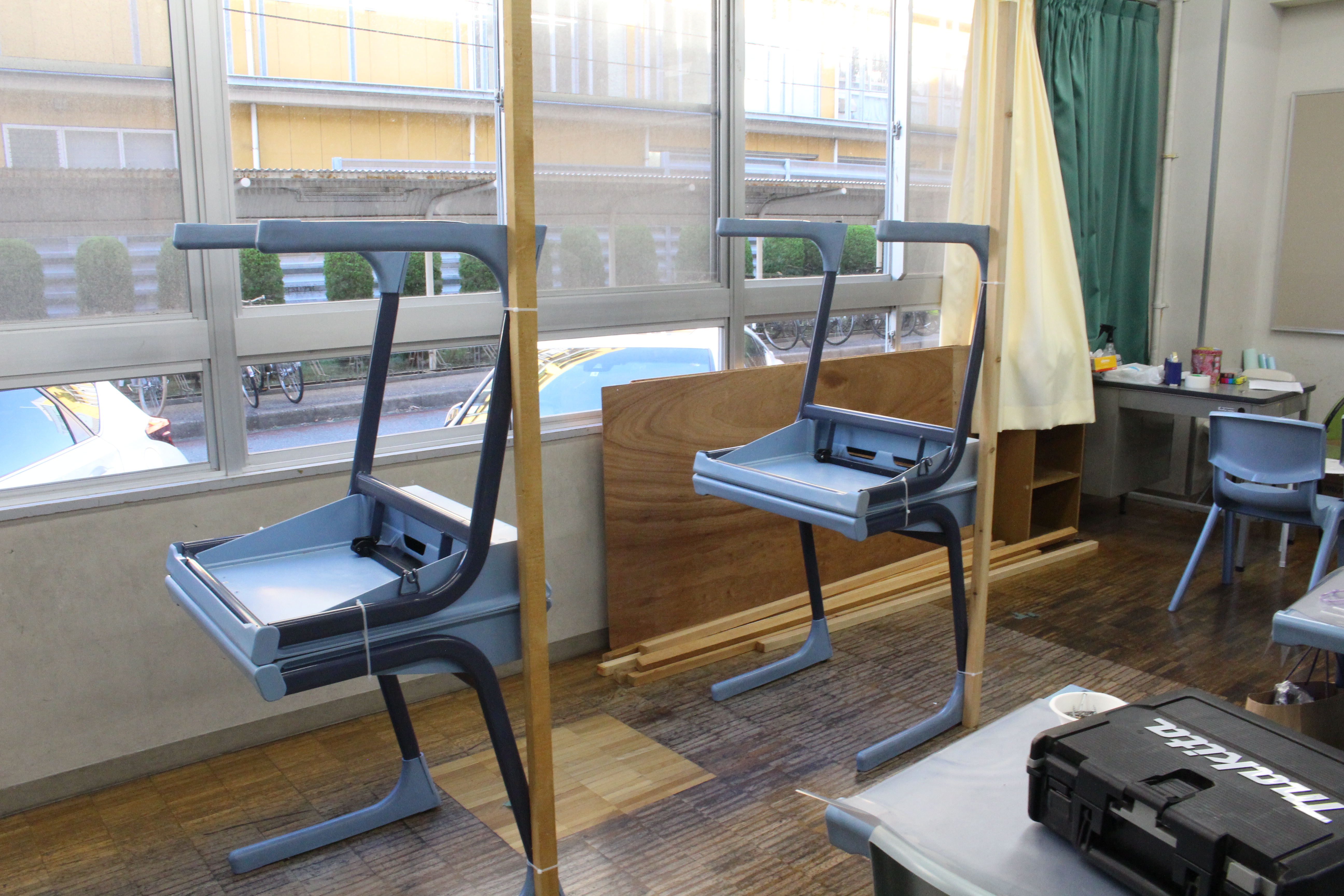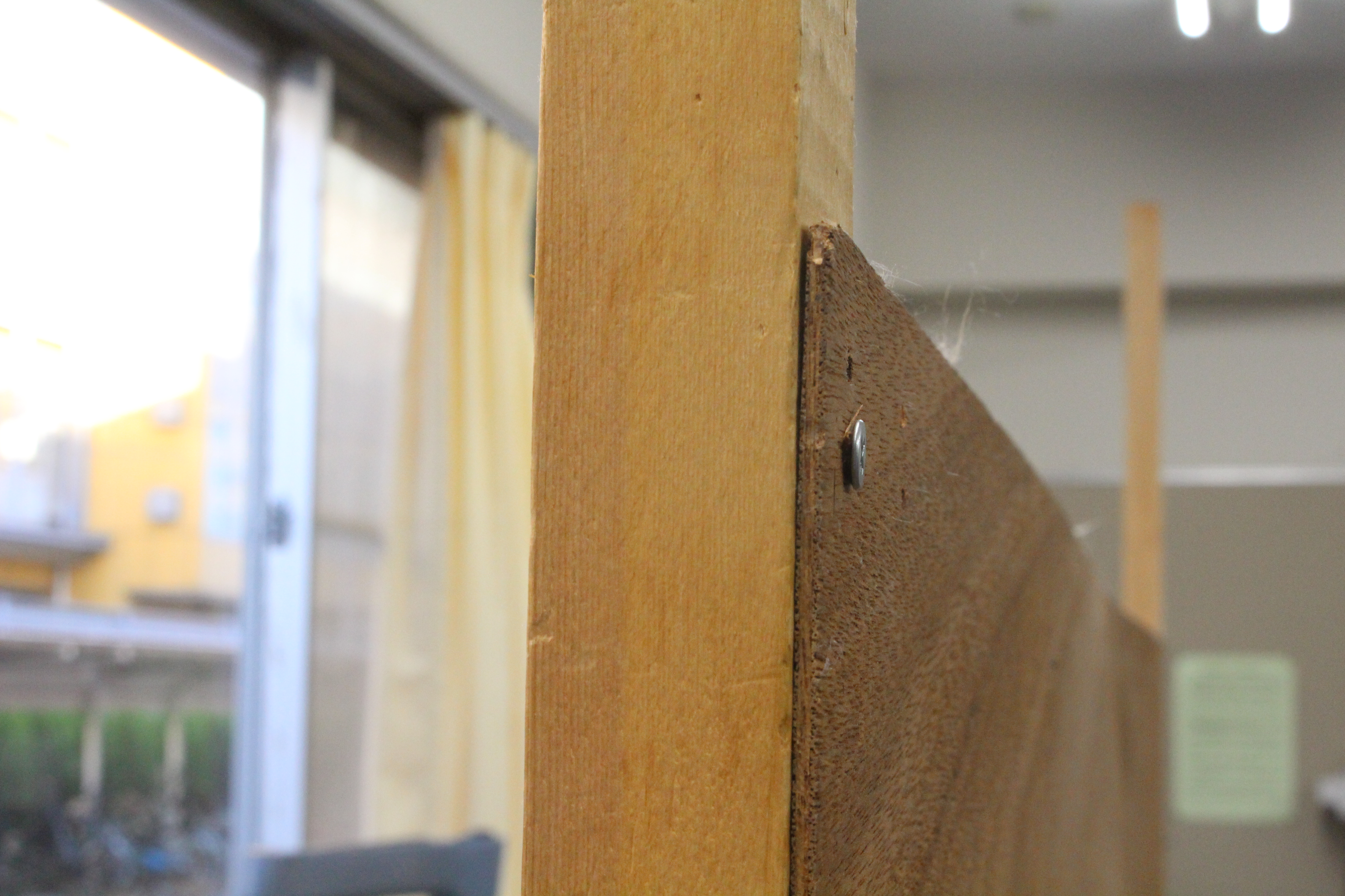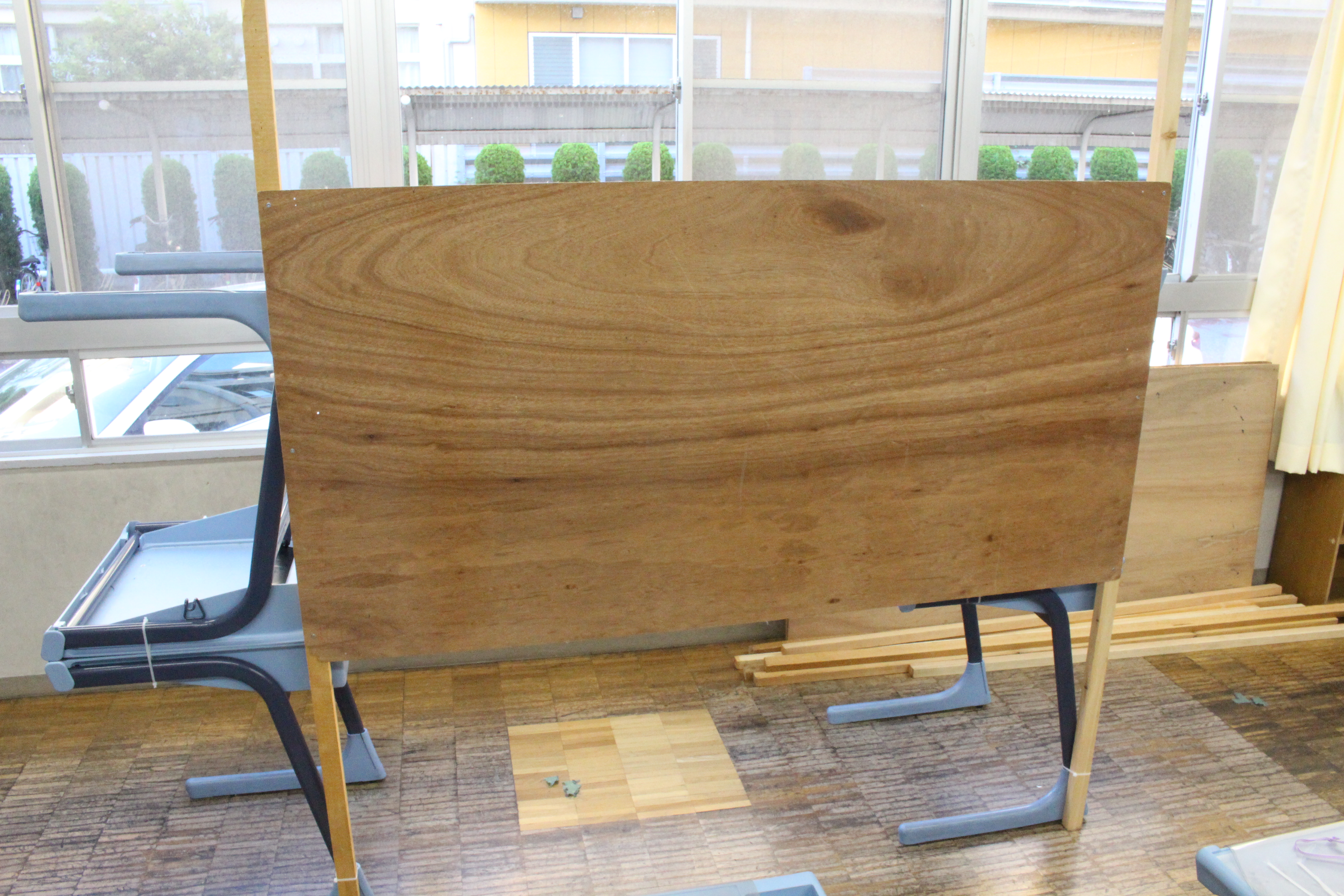 ベニヤ板の立て方(中高共通) 2023.09.07 2023.09.05 ※画像の読み込みに少々時間がかかります。 必要なもの(ベニヤ板1枚あたり) ・立ててある角材 2本 ・ねじorくぎ 適量 ・ドライバーor金づち 立て方 1.ベニヤ板を支えられる位置に角材を置く なるべく離れた位置でベニヤ板を角材に固定すると安定します 2.くぎorネジでベニヤ板を固定する くぎ・ネジの先が飛び出ないように!(けがをしないように!) 完成!! さいごに 少しでも分からないことがあれば生徒会室の文実執行部までお気軽にお問い合わせください!